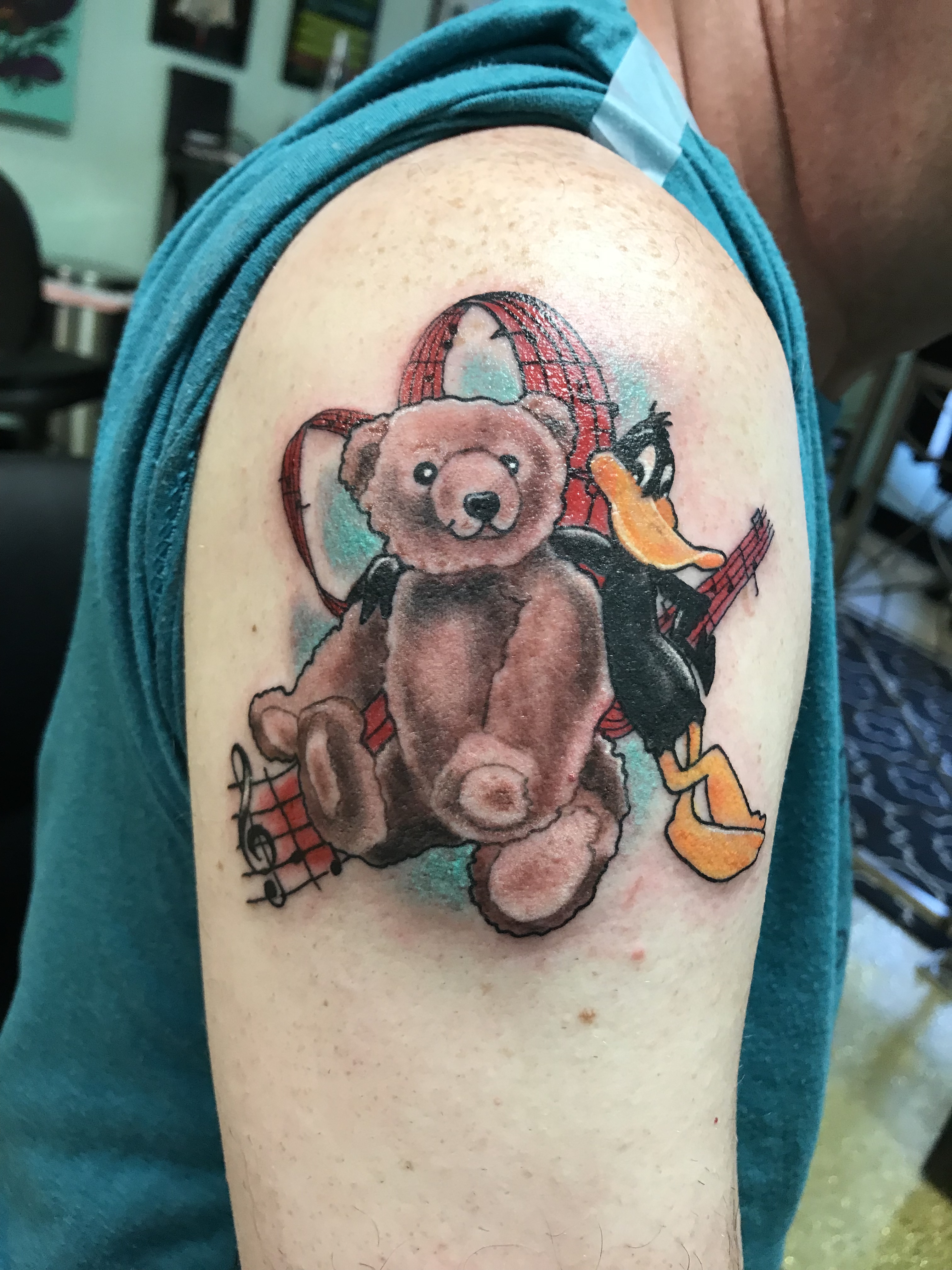 So I did it, I actually let my sister tattoo me today. I had told her a number of years ago that if I lost Tommy, she could do a Steve/Tommy memorial piece and so the time came for me to undergo the needle. I think it turned out rather well (picture below). I’ll let you all figure out what it has to do with Tommy and Steve…