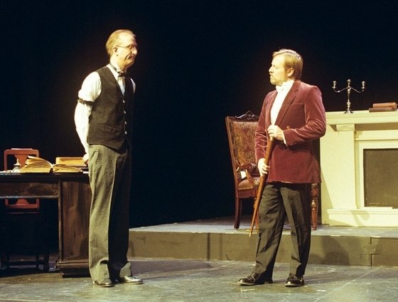 Getting together with Frank always takes me back to early Birmingham theater days. He was running a musical theater company, CenterStage when we first met. Having worked with me in Politically Incorrect, he thought I had some talent so he asked Melissa Bailey, who was directing their next show, Me and My Girl, to find a spot for me and she cast me as the butler. I started rehearsals, but Tommy all of a sudden needed back surgery so I had to drop out and get him through that process. I came back a few months later for their next show, Jekyll and Hyde, where I was again cast as the butler. (Need a servant, an aristocrat or a drunk? Call Andy) At my first or second rehearsal, there became an obvious need for more tenors in the ensemble so I called up Tommy and told him to come on down and so our association with CenterStage was born and a number of my key friendships began to develop. That show was not only our CenterStage debut, but was also the first show with the company for Leah Luker and Donald Garrett. Fourteen years later, we all still work together and enjoy each others company.