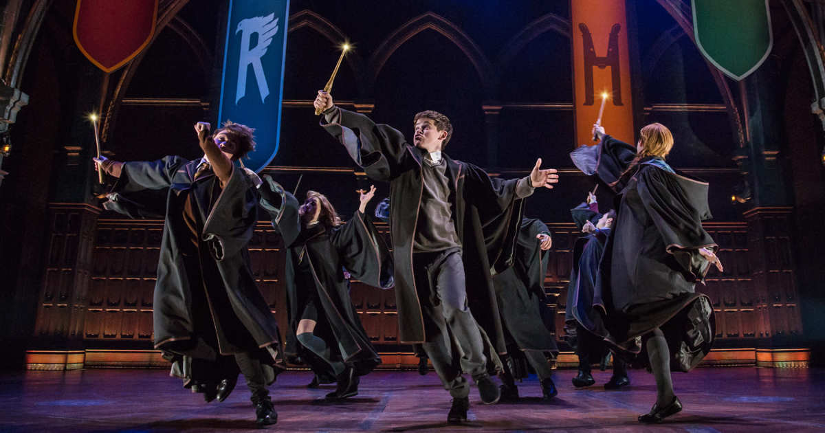 So how is the show? The staging is stunning. There is non-stop motion as the cast turns relatively simple props and set pieces into all of the locales with a cinematic fluidity. There is also major music underscoring and a number of ensemble dance breaks which move story, theme and mood (and likely cover for lead costume changes). The visual look is based on the designs from the film series so we recognize the characters immediately (although the cross cultural casting of Hermione as black might have confused some, I liked it). The actors have enough of the mannerisms of the original film cast to be familiar but use those as a jumping off point to explore new ground.