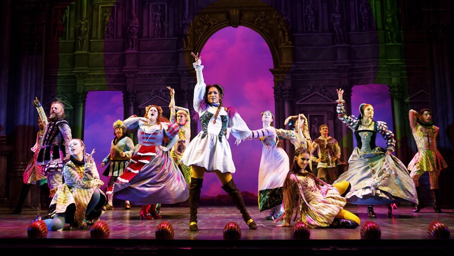 My choice was Head Over Heals, the new musical using the Go Gos song catalog, marrying it to the Elizabethan verse of Sir Philip Sidney’s epic poetic romance, Arcadia. This is not the combination that would first leap to mind and the end result is, as one might expect, uneven. I don’t think it helped that there was a wholesale replacement of the creative team during the development process with Jeff Whitty, the creator/author more or less being dumped from his brainchild.