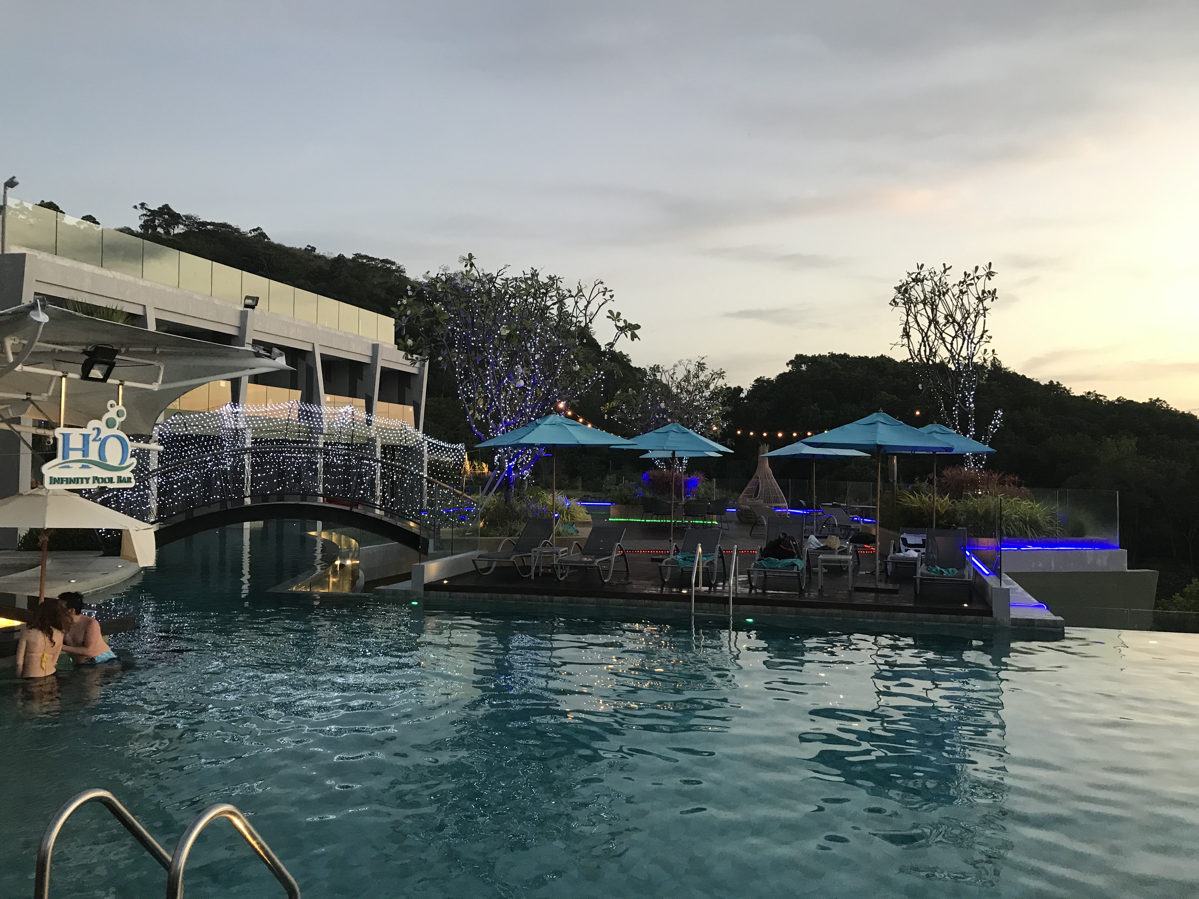 Eventually we crossed the bridge across the narrow strait that separates the island of Phuket from the mainland and headed down the coast to the town of the same name. From there, up and over the spine of the island on a windy little road to the beach town of Patong. My hotel turned out to be a rather chi chi resort up on the hill to the south of the beach, out of the hustle and bustle of the town proper. I got myself checked in, put on my bathing suit, and explored the large complex of infinity pools that seem to be the hotel’s major calling card.