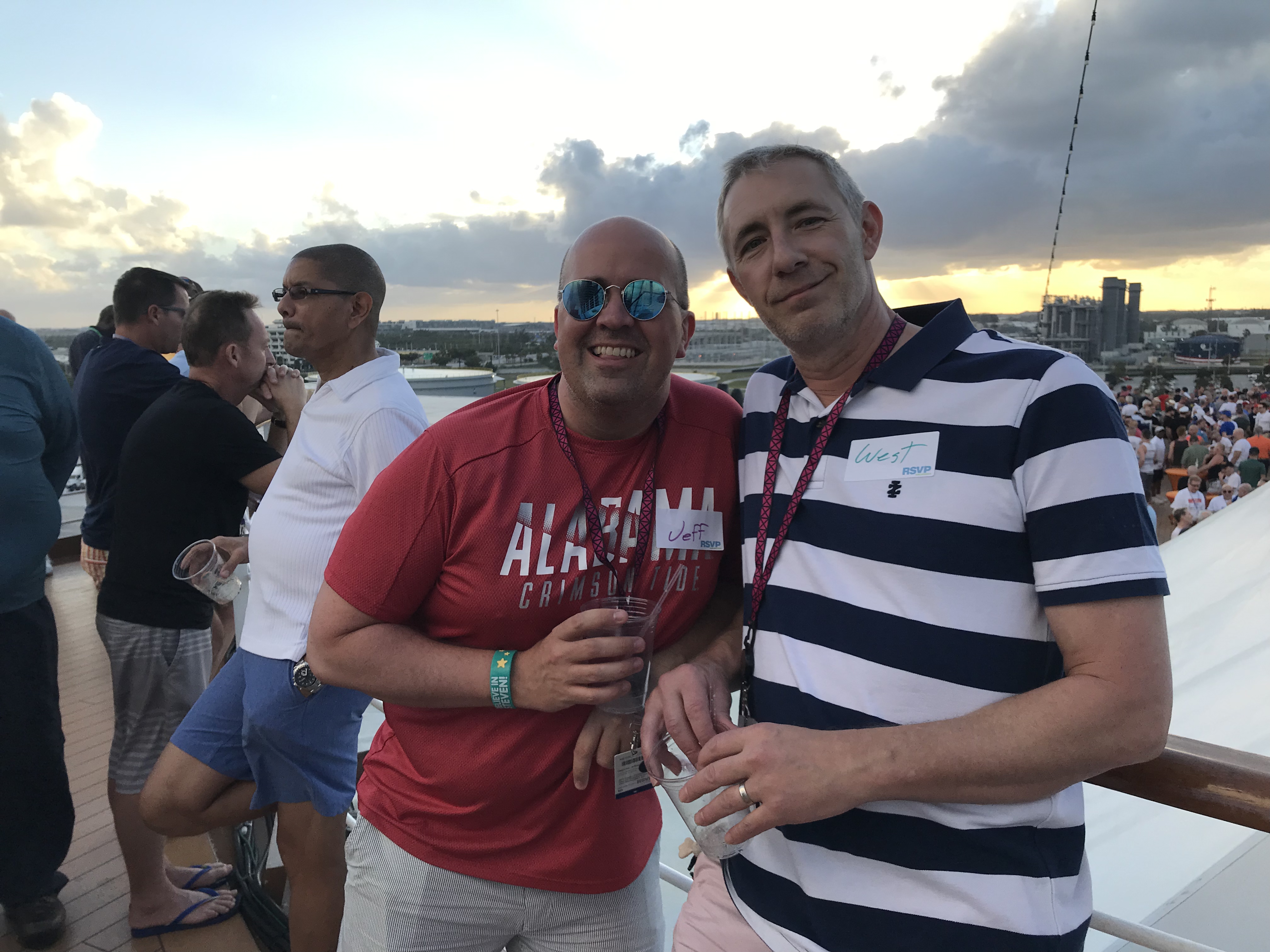 RSVP is a gay cruise company that caters more to men of a certain age. This is my first time with them. They are actually owned by the same people who own Atlantis Events (with whom I have traveled many times in the past) but I’ve kind of aged out of the Atlantis demographic and into the RSVP demographic over the last couple of decades. What’s a gay cruise like? It’s kind of like summer camp for adults. But, instead of arts and crafts you have shopping, instead of horseback riding you have tea dances, and instead of campfire sing-alongs, you have piano bars. Some couples spend months creating perfect matching outfits for all of the dances and parties, some decorate the doors of their state rooms with photos and collages, some wear far fewer clothes than they should. It’s a time and place for the tribe to get together outside the confines of the straight world, let their collective hair down, and be who they are without judgment. Steve and I started traveling with Atlantis Events more than twenty years ago, before they even did cruises and Rich Campbell remains eternal as the guy with the vision to make everything work. It’s a little unnerving to think that there may be men on this cruise who weren’t even born when I took my first Atlantis trip.