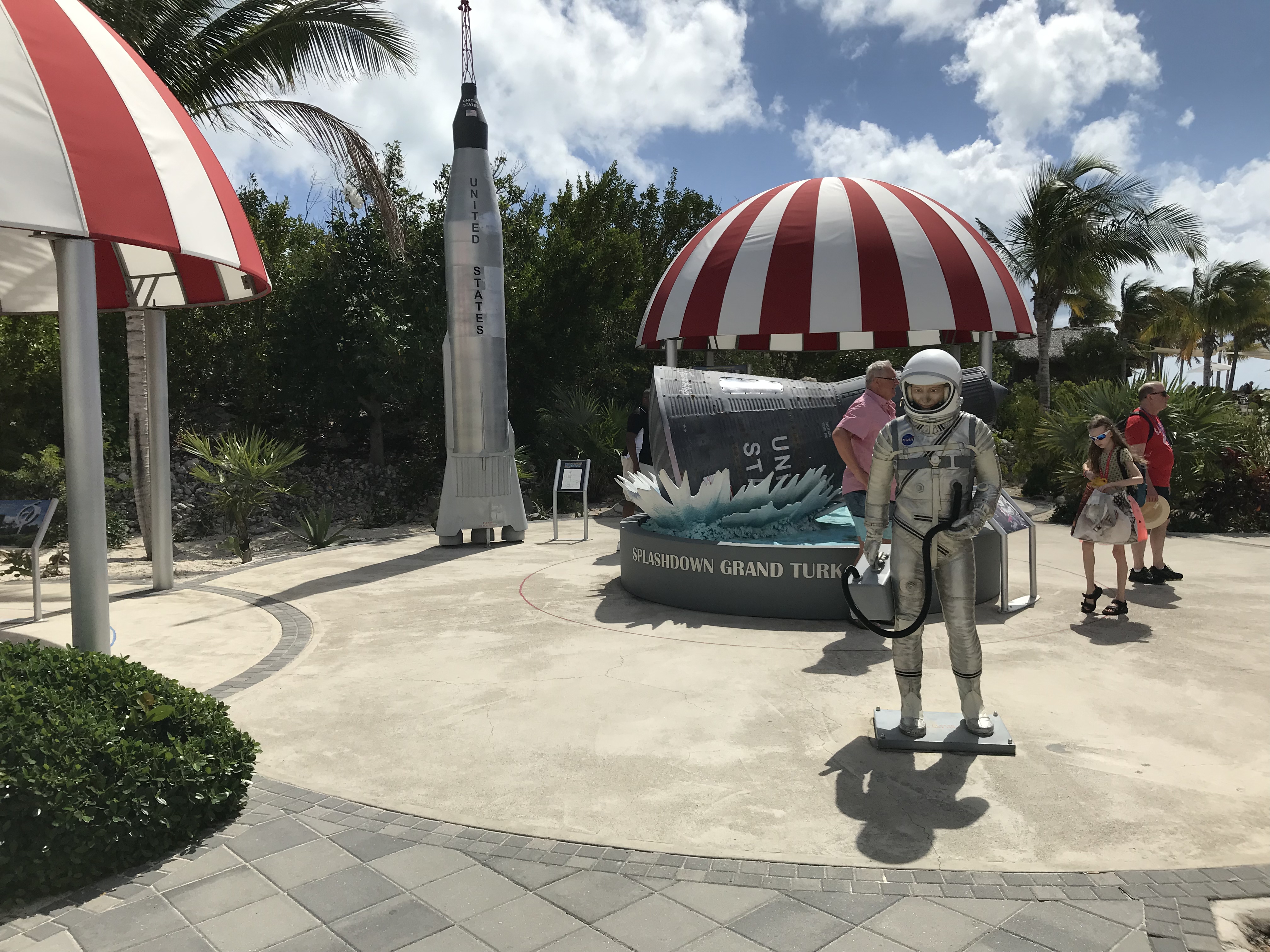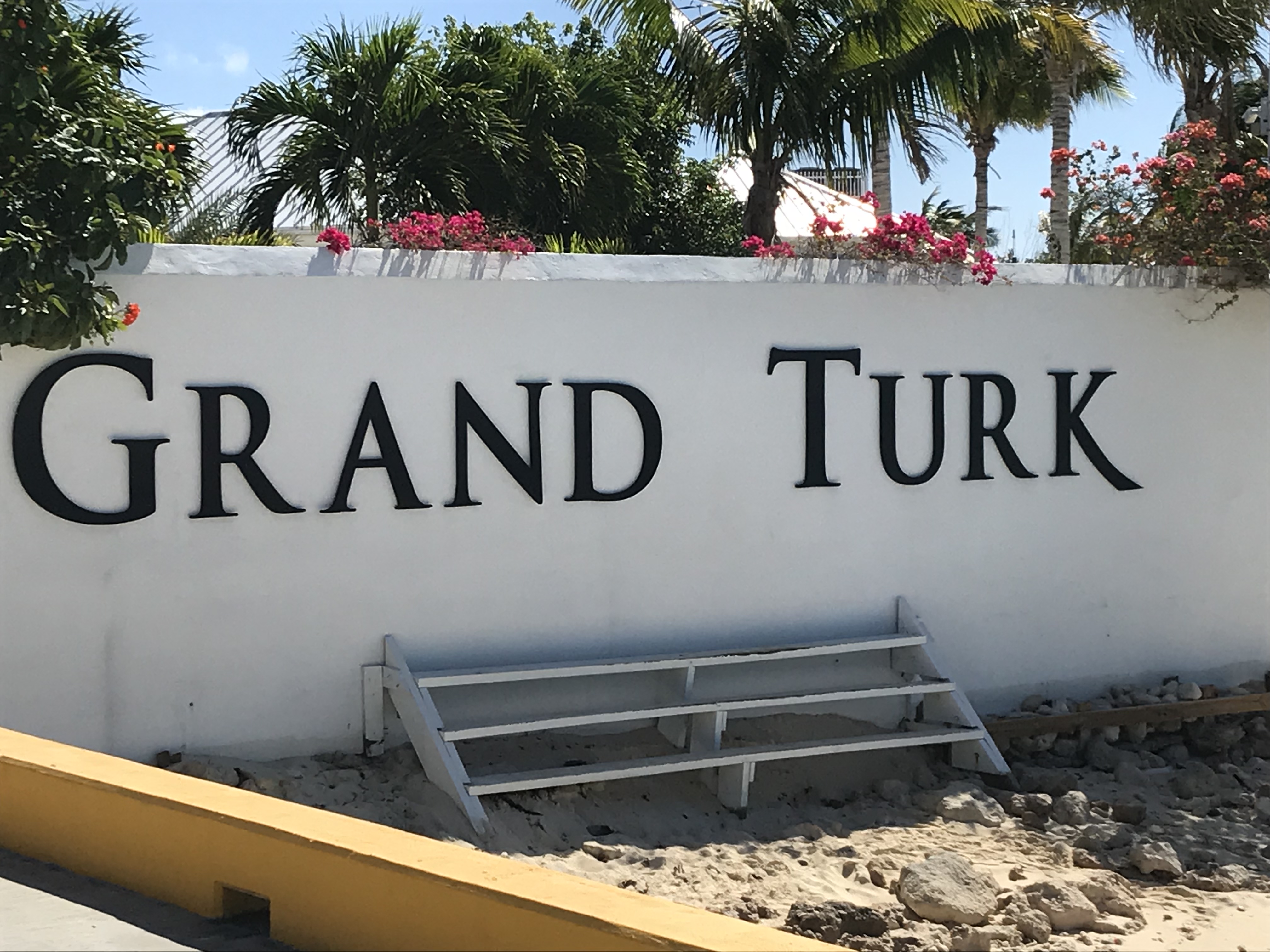 Actually, that’s not quite true. We left Grand Turk about four o’clock this afternoon after a lovely day of sunshine and sand and the Nieuw Amsterdam is bound for Puerto Rico and somewhere with the Atlantic off her port bow and the Gulf of Mexico off her starboard. This morning, after a leisurely breakfast, I headed off the ship and onto Grand Turk island, the chief seat of population of the small island nation of Turks and Caicos (another country down on the life list…). Grand Turk is pretty much a sandbar about six or seven miles long with a couple of small towns and some lovely beaches. It also has a lot of visible hurricane damage from the storms of a few years ago. The other ship in port was from the AIDA cruise line which is a German company and was full of companionable Mittel Europeans who weren’t in the least bit phased by hordes of gay men in the T-shirt stores looking for the perfect refrigerator magnet.