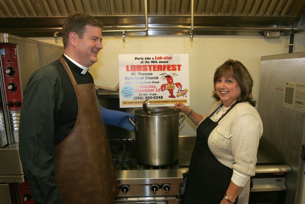 And home again, home again. But not before being invited to enjoy Lobsterfest at St. Thomas’s church in Huntsville by Sam Barnett and Laura Kilgore Barnett. Sam grew up in the church and tries to come back for this big bash of theirs every year. Mind you, I never really thought of Huntsville as a New England seafood capital but the lobster I cracked and ate was pretty darn good. It’s been a while since I’d eaten a whole lobster fresh from the pot and I’d forgotten how good they can taste. As I was sitting there, all I could think of was the opening to Act II of Carousel and I was expecting the assembled crowd to break into ‘This Was a Real Nice Clambake’.