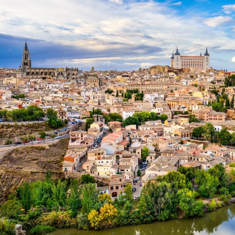 Today is the last day of the tour and one more destination to hit, Toledo. Madrid is the current capital city, but the capital was only moved here in the 17th century – the Hapsburgs and the Bourbons needed more room for palaces and additional population and Toledo, the capital since the Visigoths occupied Iberia during the collapse of the Roman Empire was left in the dust. It’s only about an hour away by train, car or bus so an easy jaunt first thing in the morning. We had a few brief showers on the trip and the skies were glowering when we got there, but things brightened up considerably through the morning and our luck with the weather continued. Toledo, as the medieval capital, is very much still a medieval town, built on a high bluff where the River Tagus makes a large oxbow bend through a gorge, it was easily defensible as a walled city and it’s also easy to see why the kings scampered after the introduction of gunpowder into warfare made such fortifications obsolete. The city retains a true middle ages feel. Winding narrow lanes with no rhyme or reason; fortified buildings, some dating back nearly a thousand years; it has a sense of unreality to it as if it’s some sort of movie set or theme park and, if you go around the next corner, you may stumble into Adventureland. The approach to the city, by a winding road on the opposite side of the gorge, lets you see it displayed out before you, looking all the world like one of the city sets of Game of Thrones, I half expected the Alcazar of the Cathedral to suddenly start unfolding as a little mechanical toy.