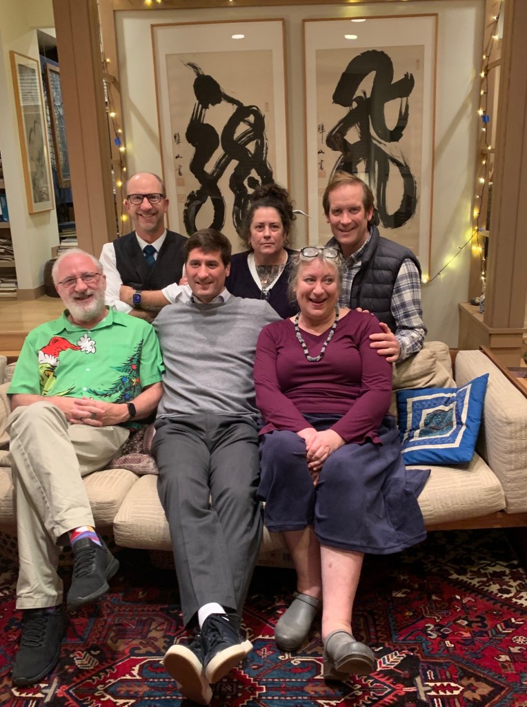 The American branch of the Saunders clan gathered at various houses yesterday for presents, Christmas cheer and our traditional feast. We almost had a full complement with 16 of the 19 members present and accounted for including all six of my generation being under the same roof for the first time in fifteen or so years. Usually either I or my cousin Jack who resides in Connecticut is missing. The other four are all Seattle based and easy to get together. My maternal grandparents John and Alison Saunders were British emigres who arrived in the 1930s and settled in San Francisco. Their two daughters, Alison and Margery, both ended up in Seattle as both of their husbands ended up on faculty at the University of Washington. The two families lived blocks apart so the three Duxburys and the three Hellmanns of my generation grew up in a tumble together and my first cousins on that side are more like siblings in some ways. I am the eldest of the gang and Jack brings up the rear eight years later. We are all accomplished each in our own way and I am delighted to say that I truly like my family, as well as love them. In all of my work with families over the years, I have found that this is not always the norm, but we all get along famously well. My generation now also includes four spouses, most of whom have been present for decades and there are now seven members of the junior generation rapidly growing up ranging from age eleven to twenty-two – a mix of first and second cousins. And, in another decade, I imagine there will be another generation still. That’s the way the world tends to work.