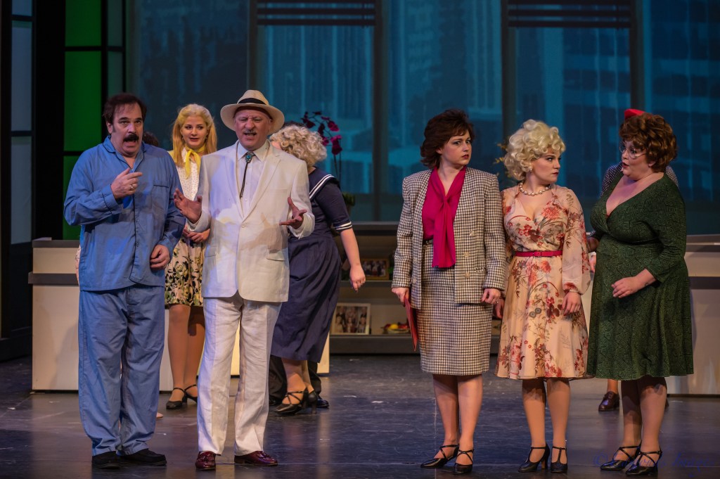 9 to 5 has been put to bed. We ended up doing just over half of the original scheduled performances due to Covid felling a couple of the leads shortly after opening. The show turned out well – a greatish production of not the best material. The songs are decent. (Dolly Parton does know how to turn out a tune). The book isn’t bad in the first act but kind of falls apart in the second act. Once our heroines, kidnap Hart and send his henchwoman Roz away, there really aren’t any antagonists on stage and there’s not much conflict left to actually resolve until the very end when my character arrives from on high to reward the heroes and punish the villains and everyone sings and dances to the title song – again. I did like my white linen suit second act costume and it’s likely to make further appearances. My first act costume was just a pair of white shorts and a toe tag. I kept the toe tag as a memento.