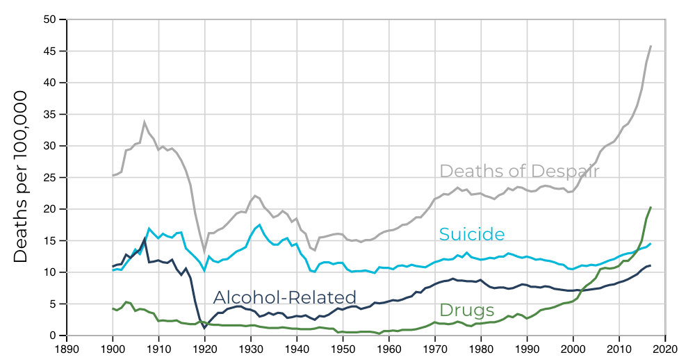 The drug overdose epidemic continues unabated as well. Pre pandemic, the number was about 70,000 a year (which was extremely high when compared to a generation prior when it was about a third of that number) and it’s now topping 100,000 a year. And that number is rising astronomically despite the prevalence of naloxone, the opioid overdose anecdote being widely available. I cannot even write a prescription for an opioid in the VA system for anyone unless there’s a prescription for naloxone in the prior year. It’s a much lower number than Covid deaths but as these deaths are mainly young and healthy people, the number of potential years of life lost are similar, if not greater. There are any number of experiments that show that people (and other species) shy away from drugs as long as they have enriched, fulfilling lives without an over abundance of stressors. Unfortunately, we live in a society that tolerates the perfect conditions for creating addiction in certain subgroups.