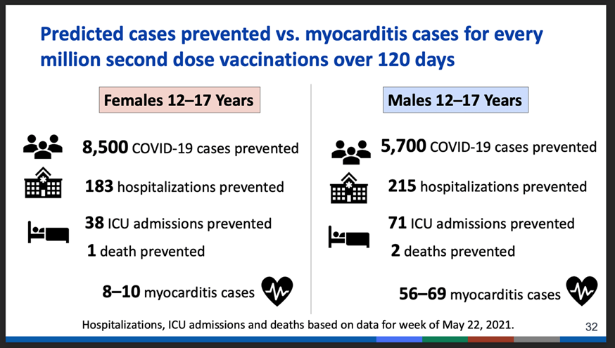 There is still some unease in the use of the boosters in adolescents due to the chance of myocarditis, especially in young men. Fortunately, the bivalent booster has had no reported cases of myocarditis and the calculated risk of the vaccine is below the risk of hospitalization and death from no vaccine. The chance of myocarditis is no higher than 1/10,000 and probably closer to 1/100,000, well below my threshold of the 1/8,000 chance all Americans have of dying in a traffic accident in any given year.