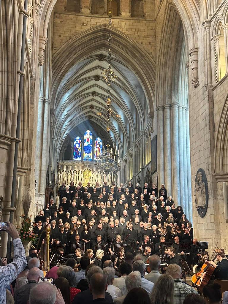After some milling around figuring out lineups (the bane of every choral concert – how do you get a hundred people on stage so they look professional and everyone is in their proper place), we were finally able to rehearse our piece with the full orchestra assembled for the occasion. The orchestration, which I had not previously heard, was exquisite and brought new power and nuance to the work. I wasn’t expecting it, but being in a Gothic church (dating back to the middle ages) which was constructed as part of a wealthy priory originally (until Henry VIII had other ideas) and singing the text of the Latin mass gave me a visceral feeling of connection to the space and all of the other people over centuries who have lifted their voices in song and celebration in that sanctuary. I hadn’t really expected to feel that.