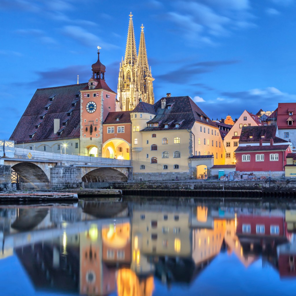 The day did not start out in Berlin. It was supposed to start out in Regensburg but low water in the Danube prevented the ship from getting that far upriver. We instead had to get up and packed and off the ship an hour earlier than planned to be transported from whatever little Danube hamlet we could dock at by bus up to Regensburg. Like Passau, I had been to Regensburg before. While Passau is a baroque town that survived World War II relatively unscathed, Regensburg is more gothic having been around since the ancient Romans. (Part of one of their gates to their fortified camp on the site still stands.). It became an important trading center in the later Middle Ages due to its proximity to the Danube and due to their having built one of the few bridges across the river (still in use 800 and some years later). Much of the town center dates from about 1350-1550 and, unlike most other German cities from that era, was pretty much untouched by World War II as it was a provincial backwater in the 19th and early 20th centuries, despite the presence of the Princely House of Thurn and Taxis (who had become and remains exceedingly rich through the invention and maintenance of a reliable postal service in the Middle Ages – their current money comes from brewing).