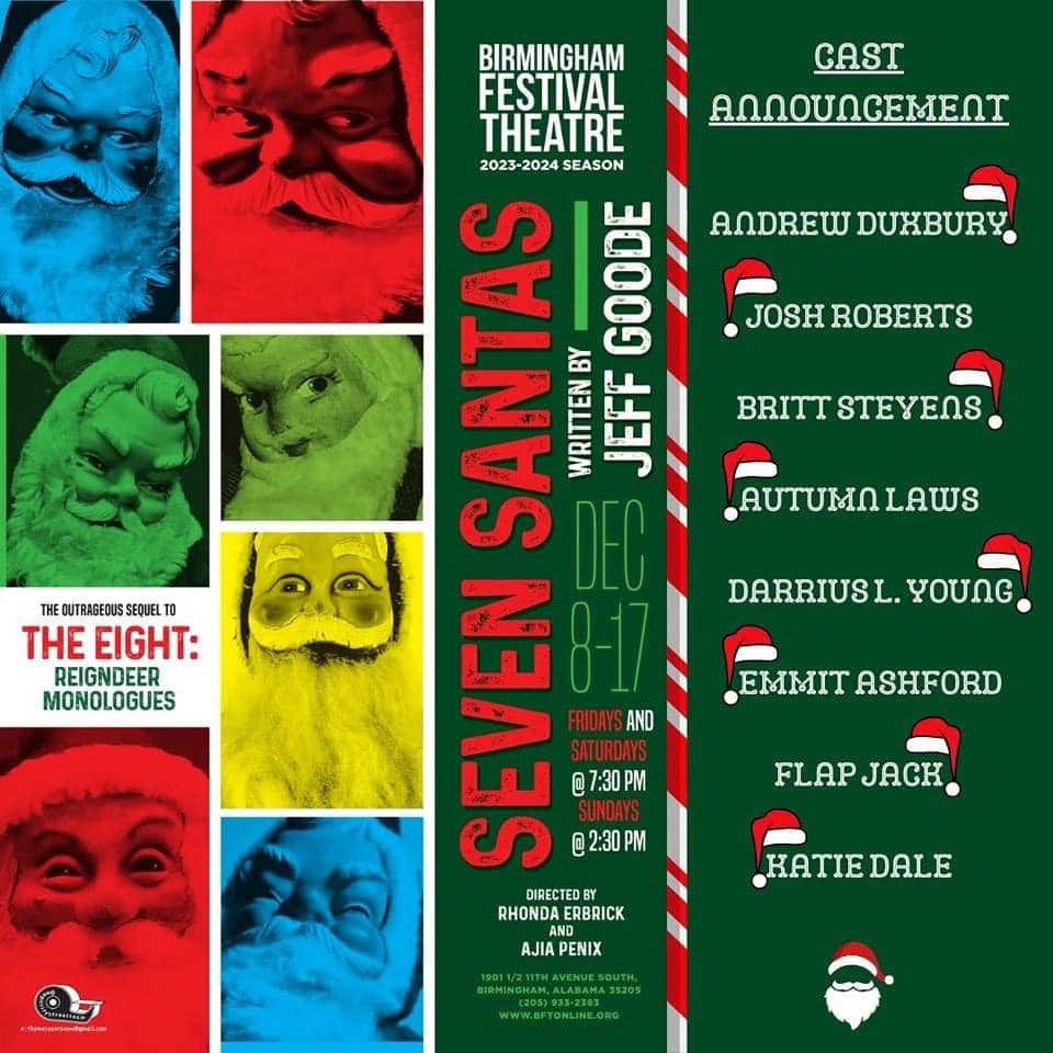 I did put some work in on my lines for Birmingham Festival Theatre’s production of Seven Santas which is slated to open on December 8th. I have the monologue more or less down. I know my lines for the scene work, but not firmly, and I probably won’t be able to fully get them into my body until we’re actually doing that very long and complicated scene on its feet, off book, every night this next week. I tend to polish my performances organically and I have to have the sound of others voices and my blocking and other people to react to in order for everything to fall into place the way it’s supposed to. Tickets are for sale on line for all six performances if you really want to hear me curse routinely and get violent with Mrs. Claus.