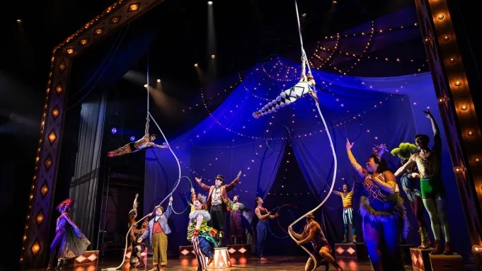 Our matinee was the new musical version of Like Water for Elephants starring Grant Gustin of “The Flash’ fame. I liked the show but can’t say I truly loved anything about it. There’s nothing seriously wrong with it, it just doesn’t grab you in any particular way. The circus staging with a half dozen acrobats mixed into the ensemble is great but the physical production is otherwise a bit on the cheap and I was quite disappointed in the animal puppetry. I guess I have been spoiled by the likes of War Horse and Life of Pi. Performances are good, but nothing is a standout, not even Gregg Edelman as the older version of the protagonist. Again, as in The Notebook, we’re doing a memory play although the storytelling is a bit less clear with this one with our older narrator bopping from present to past through some very uneasy transitions.