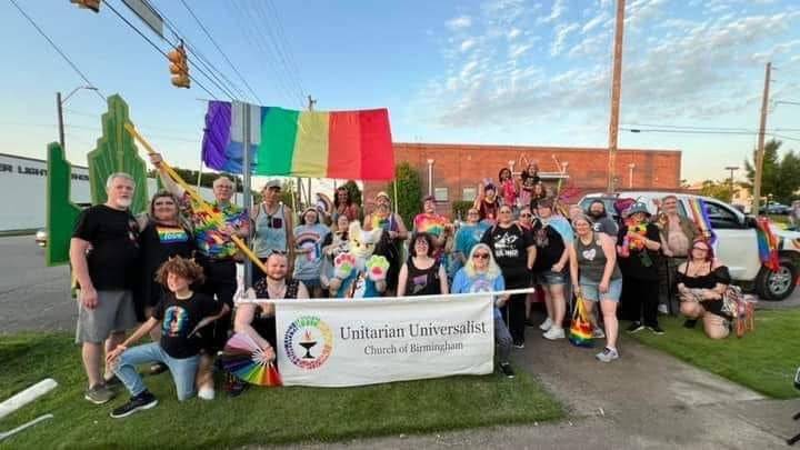 The quote popped into my head last night as I was joining my Unitarian Universalist crew for our annual appearance in the Birmingham Pride Parade. I was tired from a six hour tech rehearsal for Chitty and pulled rank and sat with the other revered elders on the float rather than walking the route which I would normally do. As we waited for the parade to start, I was mainly thinking about being hot and hungry and longing for a lie down and a good night’s sleep. But then the whistles blew, the parade units slowly trundled into formation, and off we went. As we turned the corner from 32nd street on to 7th avenue south, something magical happened. On a sultry Southern night under a crescent moon, waves of positive healing energy radiated from the crowds on the street (easily the largest turnout I’ve ever seen for Birmingham Pride by quite a large margin) and were reflected back by the marchers and a feeling of joy was infectious and my energy and sense of connection returned. The world was indeed full of wonderful things and possibilities and love.