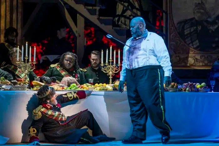 I took this past weekend off from usual pursuits. Instead, Patti Steelman and I road tripped it over to Atlanta on Friday afternoon for an overnight at the W hotel. After checking in and a visit to a not very good vegan restaurant at Ponce City Market (atmosphere 7, food 4) we headed off to the Cobb Energy Center to see Verdi’s Macbetto at the opera. (I’m going to cling to theatrical supersition here and not use the English version of the Scottish Play’s name). Patti is now a regular theater buddy but I doubt I shall ever get her to really appreciate opera. But she does tolerate it. And I gave her some homework so she had some background on Verdi and his approach to the material before we went. I had listened to this one before but had never seen a production so it was nice to tick it off of my life list.. Michael Mayes, Baritone played the title role. Many long years ago he sang the role of Valentin in a production of Faust for which I was in the chorus. He was handsome, supremely talented, affable, and an all around good ol’ boy – which befits someone who hails from Cut n Shoot Texas. Now he sings dramatic heavy roles in all of the great opera houses of the world (De Rocher in Dead Man Walking, Sweeney in Sweeney Todd, Alberich in The RIng Cycle etc.) I made journeys to Atlanta opera to see him in the first two roles. Haven’t had the courage to take on the full Ring Cycle yet. He and Tommy, in particular really got on well. They were both scions of the rural working class and saw the world in the same way. The opera was quite good. Atlanta has come way up in the world over the last few decades and is now a top ten company like Houston, Seattle, San Francisco, and Santa Fe.