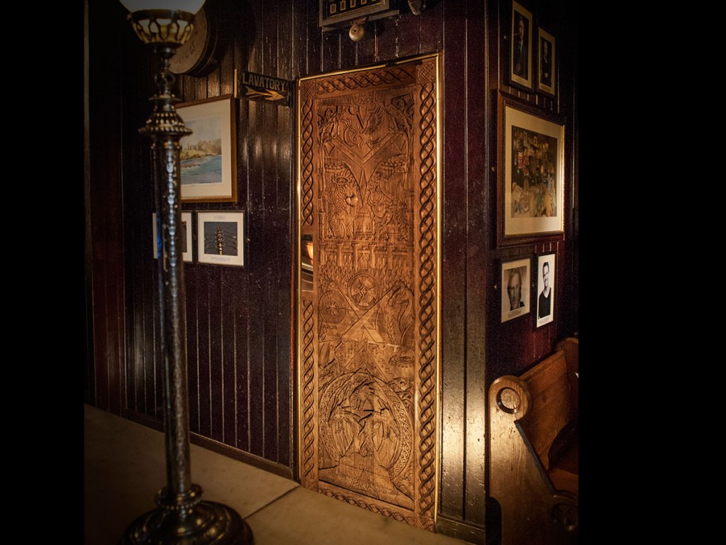 Back on the bus and another hour or so and over the border into Northern Ireland and to the town of Enniskellen where we stopped at a 19th century Irish pub known as The Hollow although its real name is The WIlliam Blake. (Poets and Pubs – that’s Ireland). It was chosen as it has a relatively famous carved door. The center for filming of Game of Thrones was Northern Ireland and one of the locations, used as The Kings Road, is an avenue of interlacing beech trees called The Dark Hedges. During production, a windstorm toppled several of the trees. The production took charge of the downed trunks and the craftsmen employed on the show made them into ten carved doors (one for each episode of season six – why season six? I haven’t the foggiest). One ended up in this pub and there’s a whole game where you run all over Northern Ireland trying to collect all ten doors. I am not participating.