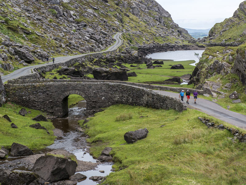 Today was a relative sleep in day and I didn’t have to be down to breakfast until sometime after 8:15 for my oatmeal and yogurt (my staples when I’m a bit uncertain about the eggs and breakfast meats at the hotel buffet) prior to boarding the bus. This time, we headed south to the road around the Iveragh peninsula known as the Ring of Kerry, one of the most scenic on the island as it veers from the waters of Dingle Bay to passes between the highest mountains in the country all in the matter of a few miles. Mind you they aren’t terribly high mountains, even in Appalachian terms, but they’re pretty darn impressive as they more or less rise directly out of the sea. The weather held (cloudy but fairly clear) and most of the morning was spent stopping for photo ops and oohing and aahing at the scenery. Lunch was in Waterville, at roughly the halfway point. The rains descended while we were safely inside the pub, dropped an inch or so of water and then cleared up just as we finished lunch and thoughtfully stayed away the rest of the day. I guess they were making up for yesterday at the Cliffs of Moher.