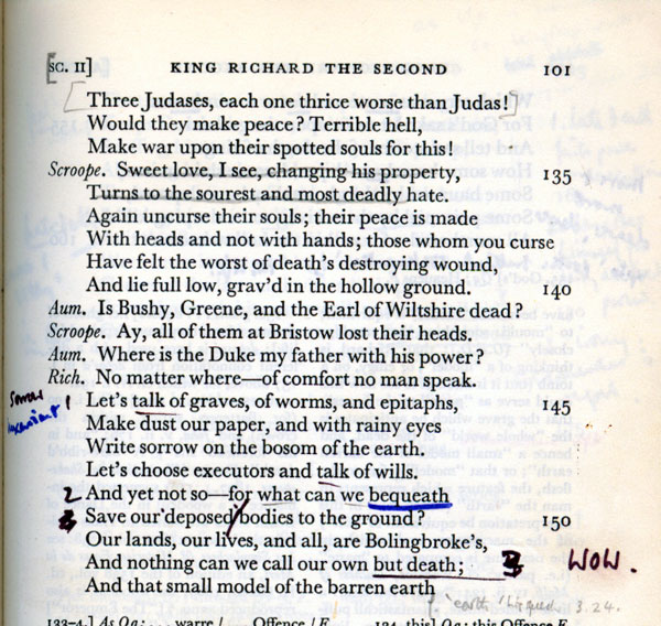 And that’s a wrap on the first week of rehearsals for Richard II. I think it’s going to come together well and be the show I’ve had rattling around in my head these last few months. At least the parts we’ve put on their feet are working relatively well. I’ve always liked conceptual Shakespeare. At least as long as the concept helped clarify theme and character. We still do the plays after four hundred years because the ideas and insights into humanity remain timeless which in turn makes it easy to set the plays anywhere and at any time and not confine them to Elizabethan drama. Richard II may be about specific political events in late 14th – early 15th century England but thos are just surface trappings to exam how a man with absolute power undoes himself by his unwise application of that power. It’s something we see all the time – and it’s become pretty much a daily occurence under the current administration. Richard is not our current president. Richard has self awareness and that’s the tragedy. In hindsight he understands what he has done that has caused his downfall. The president isn’t a tragic figure. He’s an operatic one. He’s larger than life and if he is taken down by the gods, he will be unable to comprehend his role in that process. He’s the Duke in Rigoletto, not a conflicted Shakespearean protagonist.