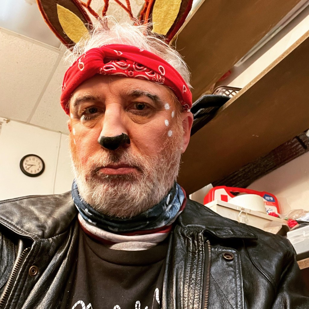 The play I’m performing now, The Eight: The Reindeer Monologues was written by Jeff Goode in the early 1990s during the first Clinton administration. It’s a scabrous dark comedy in which each of the eight reindeer gives a monologue, shedding a different perspective on sordid events at the North Pole involving a libidinous Santa. Even thought the play is now nearly thirty years old, the politics are so prescient that it feels like it was written for our current time. It doesn’t take a big stretch to draw parallels between a vulgar sexually abusive Santa and a vulgar sexually abusive ex-President. Once you do that, a whole lot of other things the play has to say about gender roles and politics, capitalism, commercialization, and other themes become crystal clear. The play ends with nothing having changed and I can’t help but feel that, on a political level in this country, nothing much has changed. We have a gerontocracy pining for the old days and wishing that things could be the way they used to be. Comet, my character, is the main voice for this in the play and I’m basing him on the aging Boomer Vietnam Vets I take care of in my VA house call program.