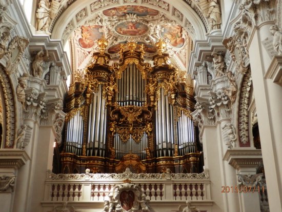 Melk is like a miniature version of Passau (which itself isn’t so large). All baroque buildings (replacing earlier medieval and gothic structures) and dominated by an enormous baroque fantasia of an abbey and church perched on a crag high above the town. (It is a bit of climb to reach it). The abbot in the early 18th century had all the original buildings pulled down as old fashioned and created his new monument to god in the new style. The edifice remains a working monastery and abbey with a community of thirty some monks (none in evidence) who still administer the building, grounds and surrounding parishes whose primary income now comes from tourism. There is also an active middle/high school on the premises with more than 900 students. They were also not in evidence. I assume they were on summer break.