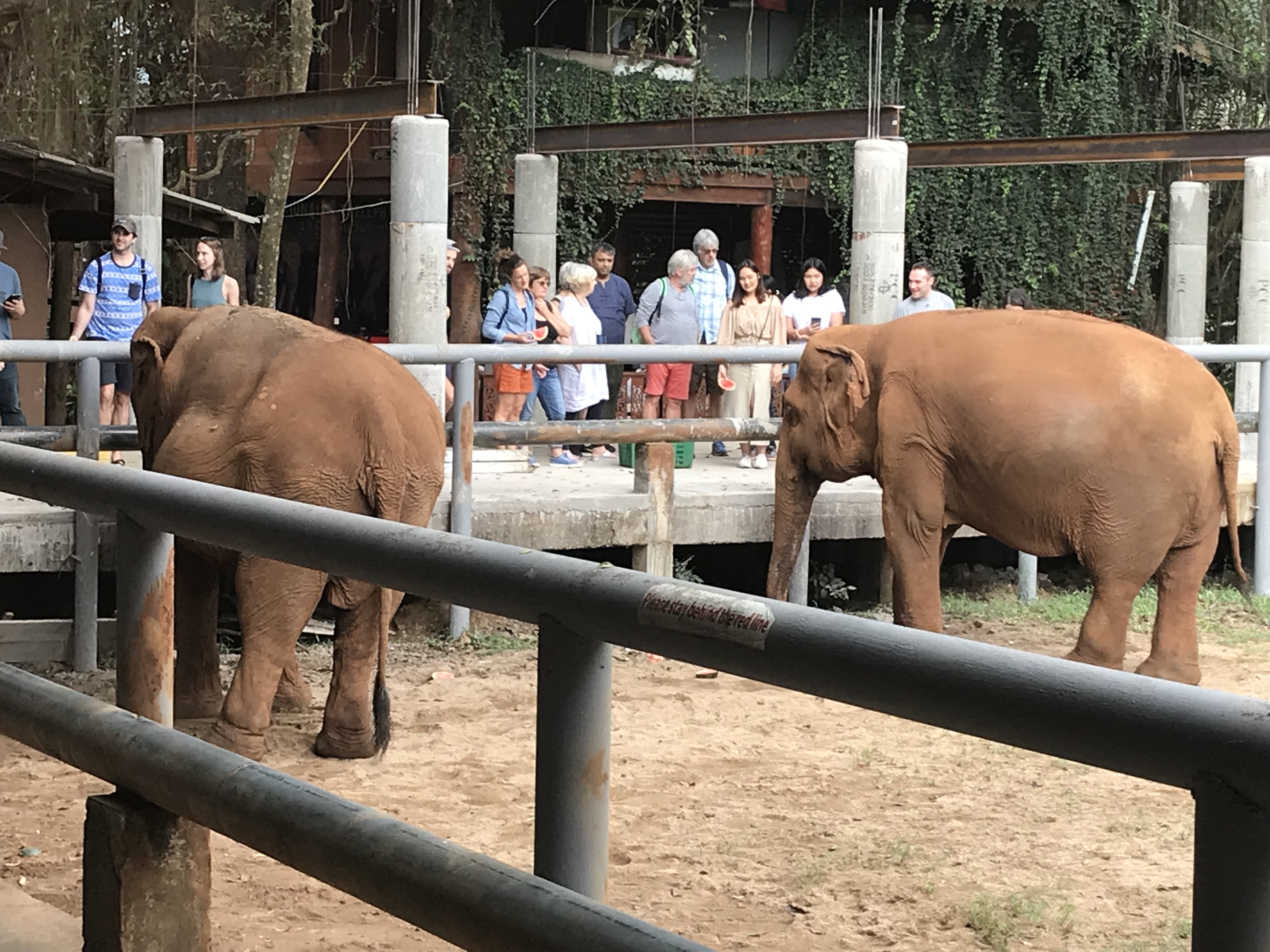 Woke up this morning and headed to breakfast where cultures again complimented each other on my plate. Some sort of chicken curry noodles with French toast. Who said breakfast can’t be ecumenical? And it’s a free buffet with my hotel. Hampton Inn needs to take a lesson or two in terms of quality and taste. No time for exploring before the shuttle van arrived to carry me off to a day with the elephants.